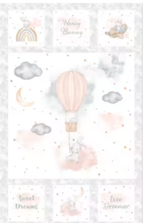 This quilt uses the Art Gallery fabric line "Timberline". With foxes, deer, sun and huts, this quilt will make any child smile! With 6 different fabrics, every glance at the quilt will be a new experience each time!