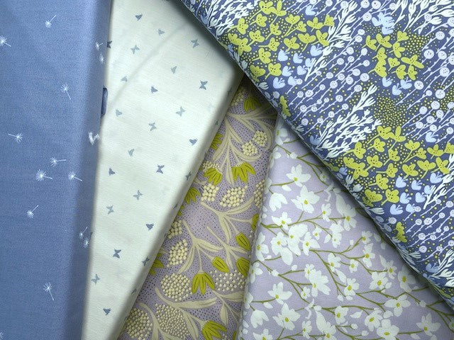 This quilt uses the Art Gallery fabric line "Timberline". With foxes, deer, sun and huts, this quilt will make any child smile! With 6 different fabrics, every glance at the quilt will be a new experience each time!